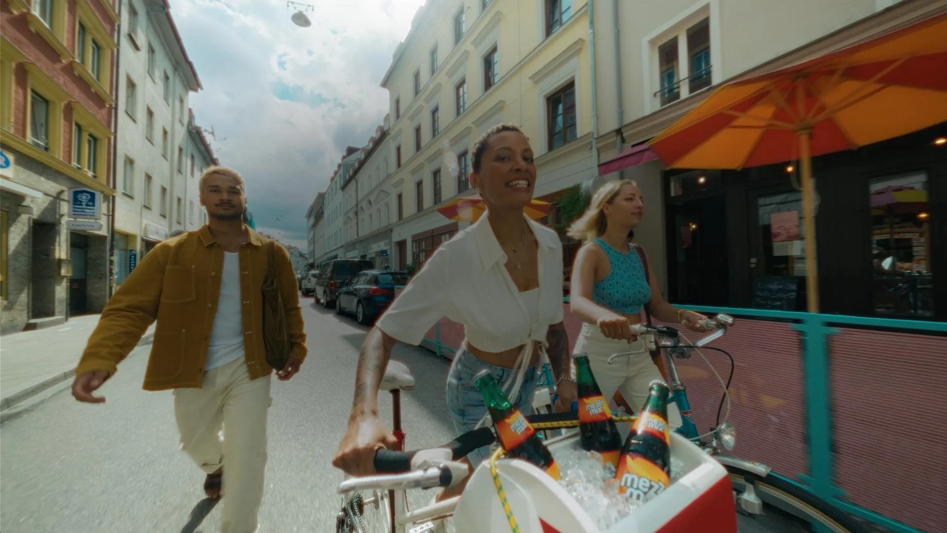 The new claim “Mixt euch eine gute Zeit” (“mix yourself a good time”) was transported via a lavish TVC, social and OOH campaign that plays with the “fascination of mixing”. Two ordinary things become something special when mixed. Just like the mix of cola and orange in Mezzo Mix.